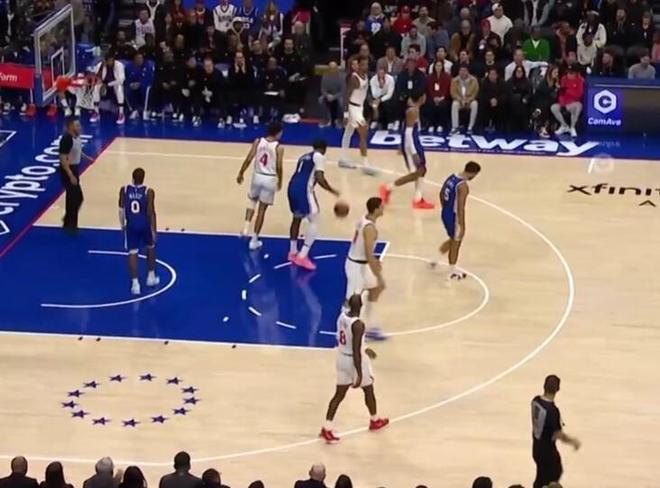 76人队:马克西、埃奇库姆、德拉蒙德、巴洛、乔治。