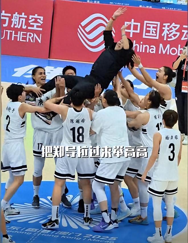 继广东男篮在全运会夺冠后,昨晚广东女篮也夺冠了,他们掀翻拥有豪华阵容,内线有巨大优势的四川队,登上最高领奖台,广东队中一派欣喜若狂,将主教练郑薇高高抛起,以这样的方式庆祝胜利。